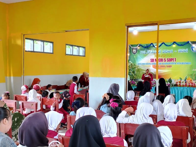 SD Negeri 5 Sopet mengadakan acara perpisahan siswa-siswi kelas 6. Hari ini menjadi momen yang penting buat siswa kelas 6. Setelah enam tahun penuh tawa, belajar, dan tumbuh bersama di SD Negeri 5 Sopet, tiba saatnya mereka melangkah menuju jenjang pendidikan yang lebih tinggi. Senyum bangga bercampur haru terpancar dari wajah para siswa kelas 6 saat menerima ucapan selamat dari para guru yang telah membimbing mereka dengan sabar.
